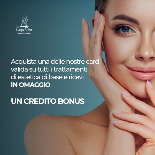 Con l’acquisto di una delle nostre card*, spendibili per una vasta gamma di trattamenti di estetica di base (come ceretta, manicure, pedicure, laminazione ciglia), riceverai in omaggio un CREDITO BONUS. Avrai a disposizione tra diversi valori di card, così da poter scegliere quello più adatto alle tue esigenze.